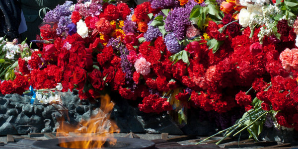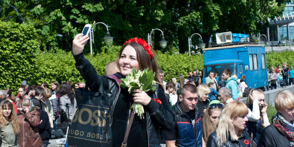 Увиденное за короткое время прогулки по городу: ожидание парада оркестров, возложение венков, песни, улыбки и грусть. Ветераны, спешащие к возложение венков, улыбки, песни. И море цветов. А также море доброты. Люди подходили и обнимали наших уже немногих оставшихся в живых Героев.